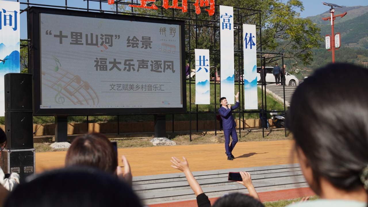 11月15日,宁德市寿宁县武曲镇承天村“十里山河”研学基地乐声悠扬、暖意融融。福州大学人文学院王晓宁副教授师生团队发起的“十里山河绘景,福大乐声逐风”文艺赋美乡村音乐汇在此举办,寿宁县委常委、组织部部长黄镇莅临指导活动。