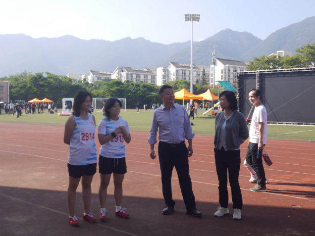 人文学院党委书记刘玮、党委副书记赵燕松看望慰问学院运动员及急救点志愿者,勉励运动员们赛出风格、赛出水平,并对志愿者的辛勤付出与专业服务表示感谢与肯定。
