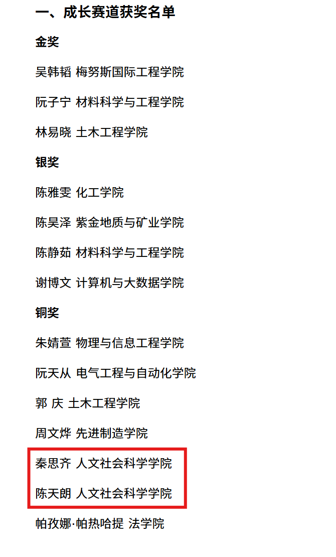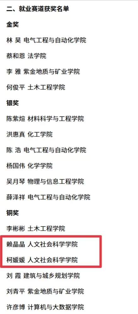 近日,福州大学公布第三届全国大学生职业规划大赛选拔赛暨第十九届职场文化节之职业生涯规划大赛获奖名单,德州扑克赌场 秦思齐、陈天朗同学荣获成长赛道铜奖,赖晶晶、柯媛媛同学获就业赛道铜奖!