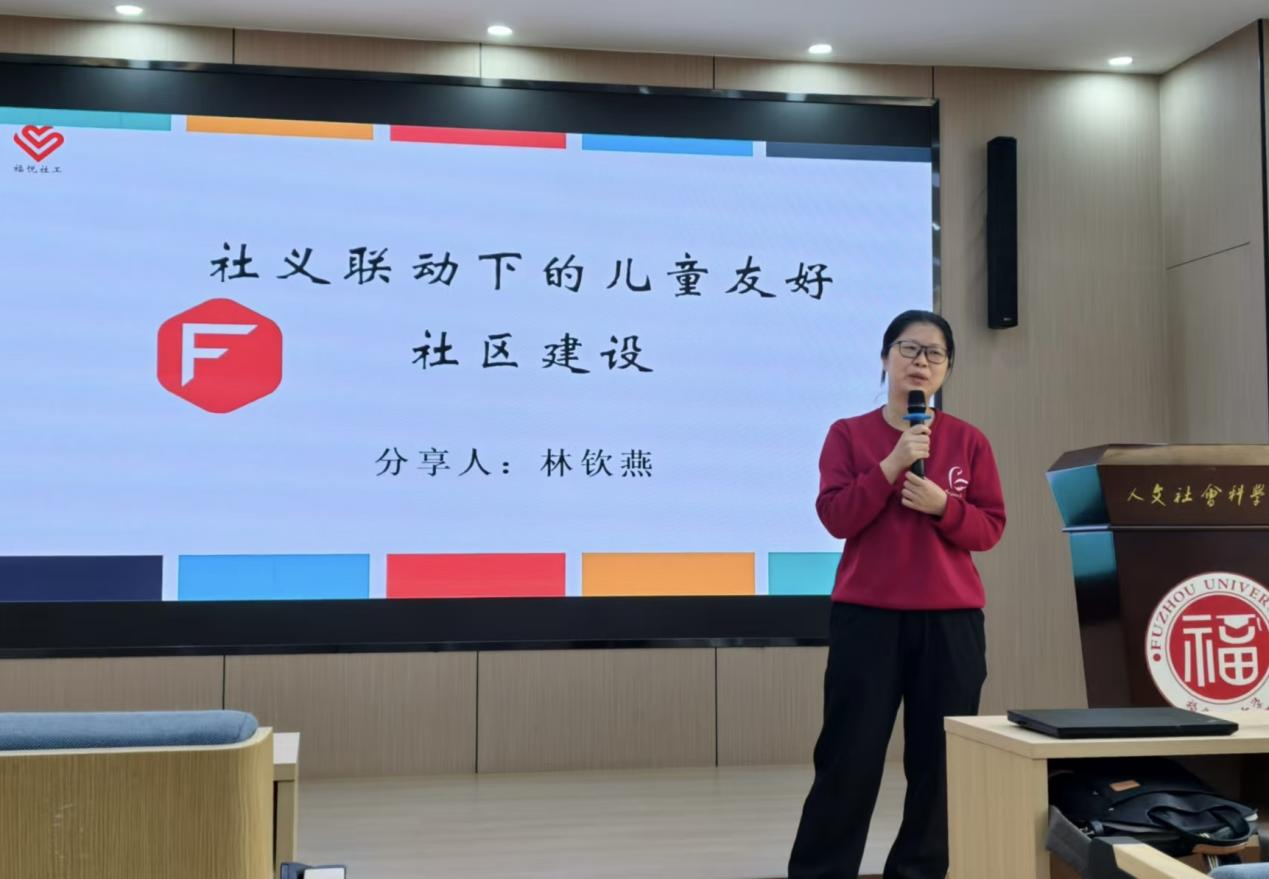 为深化社会工作专业研究生对儿童友好社区建设的理解,福州大学人文学院特邀福州市福悦社会工作发展中心的高级社会工作师林钦燕,于2026年4月21日开展主题为“社义联动下的儿童友好社区建设”的工作坊。