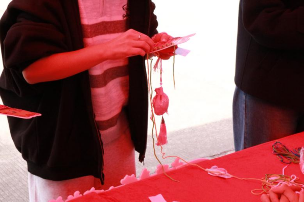 手工艺体验区同样引人驻足。手串DIY、香囊缝制、漆扇制作等摊位前,同学们亲手体验针线穿梭、墨彩点染,在一器一物中理解工艺背后的文化内涵,感悟中华文明之美。活动现场还设有抽奖环节,为参与者平添一份喜悦与期待。