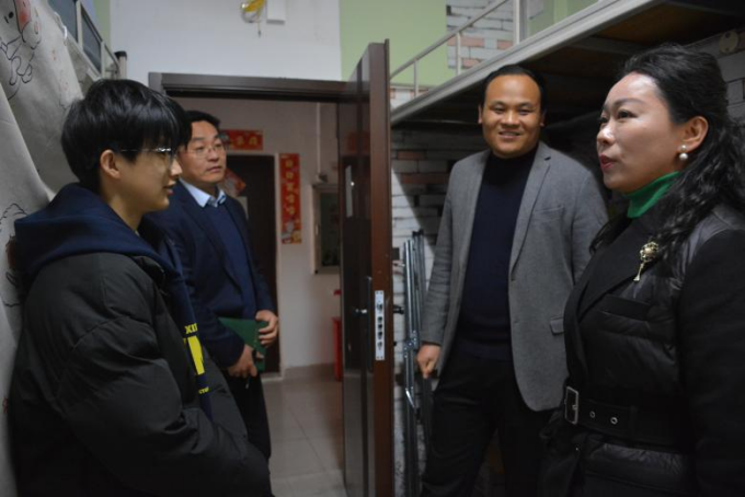 会前,吴慧娟院长、赵燕松副书记、齐朝阳老师、黄薇老师走进学生宿舍与同学们进行交流,了解近期学习和生活情况,勉励同学们共同维护良好的生活环境,以饱满的状态迎接新学期。